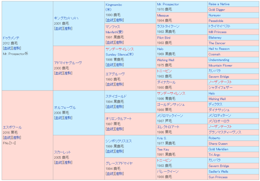 欧州の馬場にもわりと対応していて、日本でも道悪に対応して軽々と走っていた。それになんといってもこの血統表。この血統表を見て、ロマンを感じる競馬ファンは多いはず。