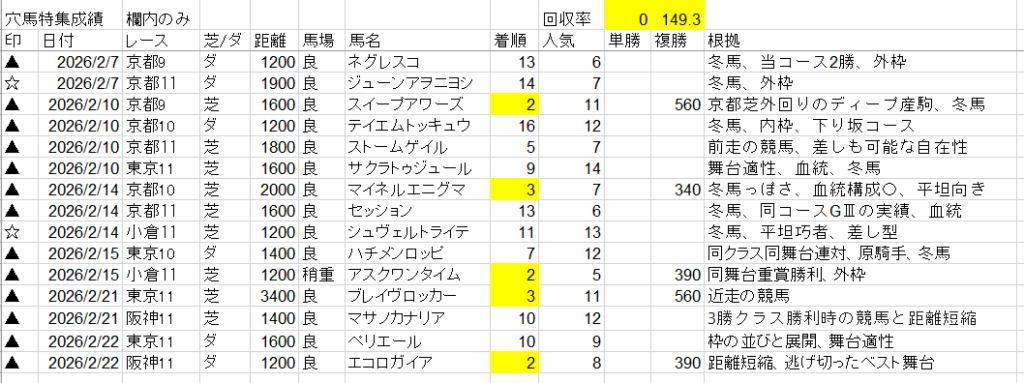 ちなみにここまでの穴馬特集はこんな感じ。